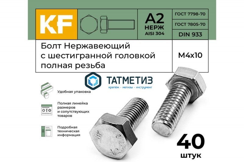 Болт М10 х 75 DIN 933 А4 нержавейка | В наличии |